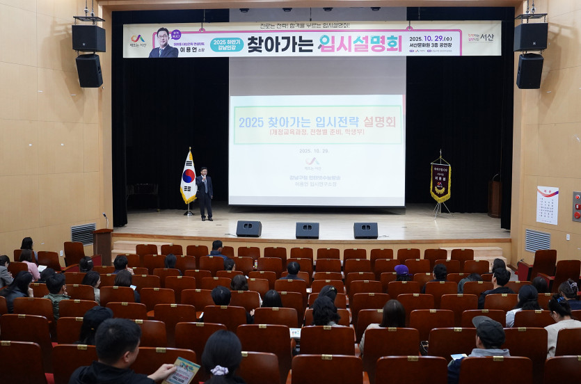 이완섭 서산시장은 “빠르게 변화하는 입시 환경 속에서 정확한 정보와 전략이 무엇보다 중요하다”며 “이번 설명회가 학생들이 스스로 진로를 설계하고 준비하는 데 도움이 되길 바란다”고 말했다.
